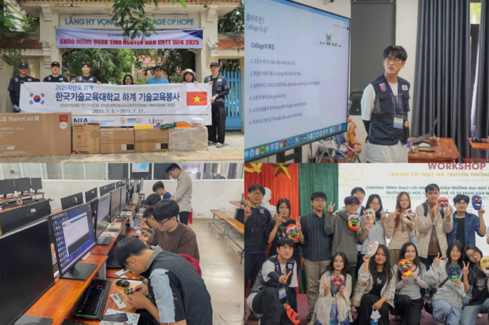 한국기술교육대학교 국외 기술교육봉사단 37명은 7월 5일(토)부터 약 3주간 베트남 다낭 지역에서 ‘2025학년도 하계 국외 기술교육봉사’ 활동을 통해 다낭건축대학교와 희망마을 보육원 등에서 정보기술(IT)·전기·그래픽 등 분야의 전문 교육과 기술 나눔을 실천하고 있다.